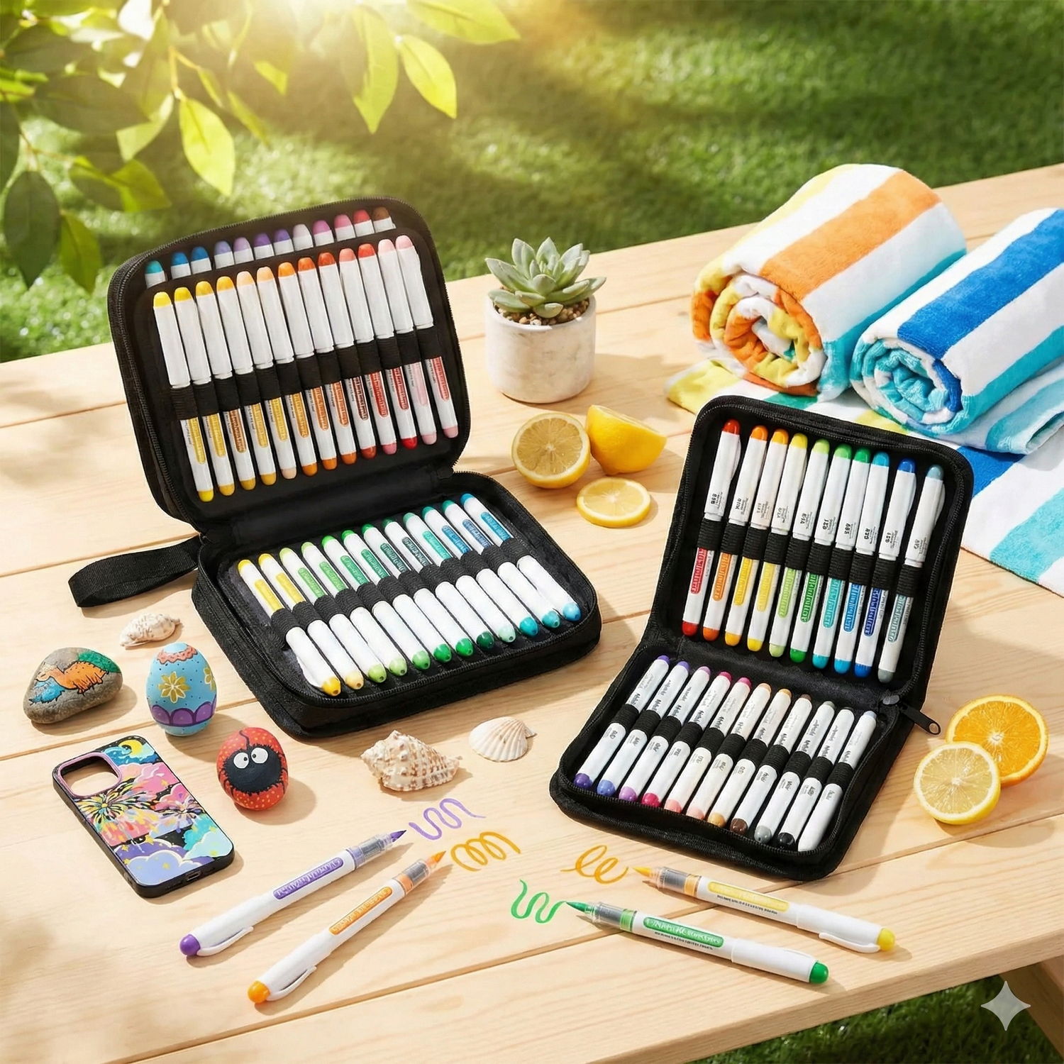ARRTX MARCADORES DE ACRÍLICO 60 COLORES PUNTA PINCEL (50 REGULARES 4 METÁLICOS 6 NEÓN)
