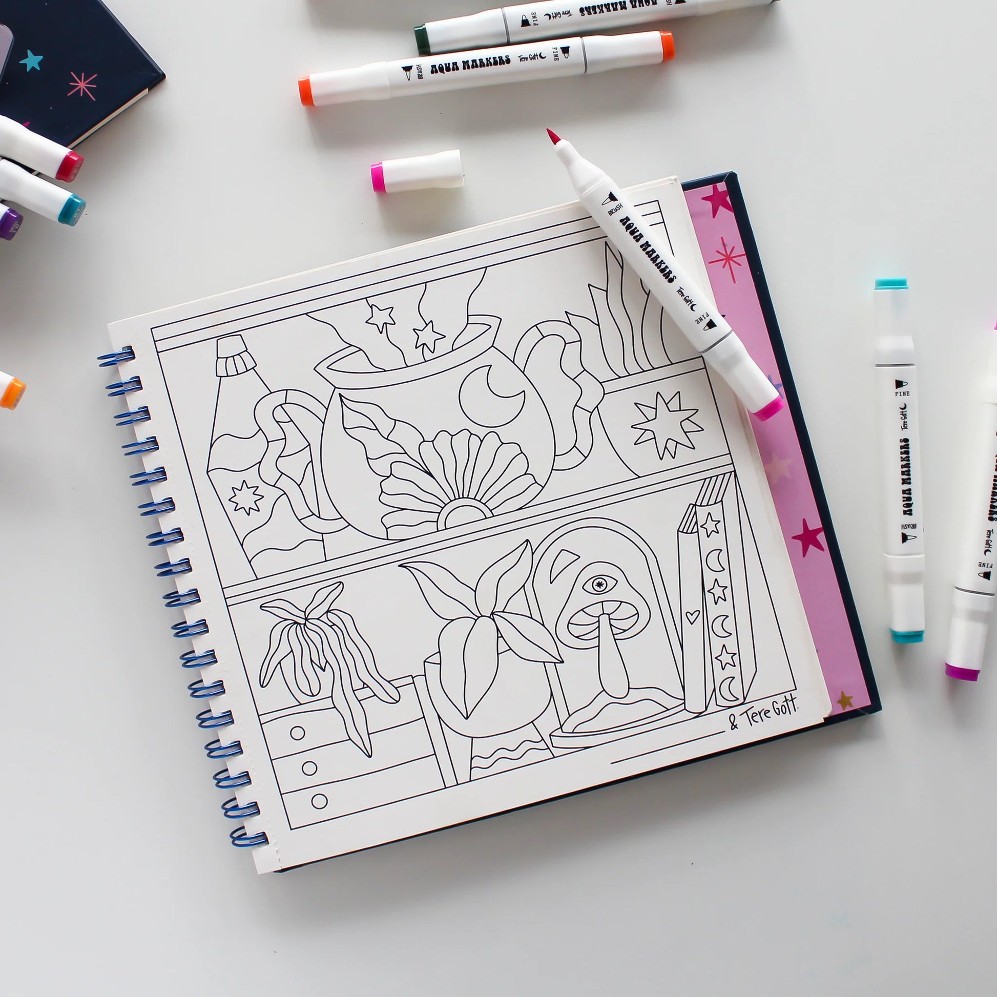 Cosmic - Edición 2024 - es un travel coloring book con 20 ilustraciones, todas distintas. Su estilo es GALÁCTICO y SOÑADOR y tiene el tamaño perfecto para que lo lleves a todos tus viajes por el universo!