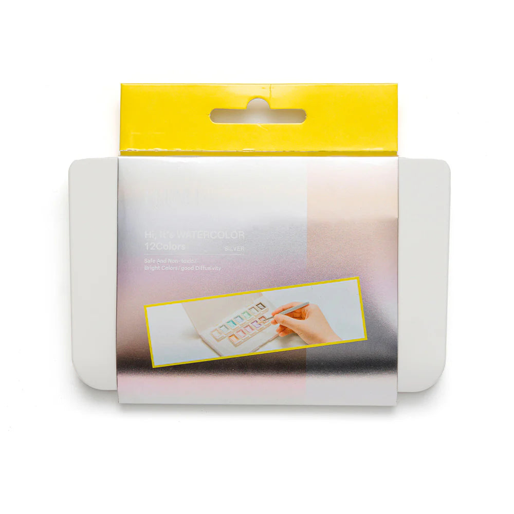 - 1 set de acuarelas sólidas de 12 colores metalizados plata